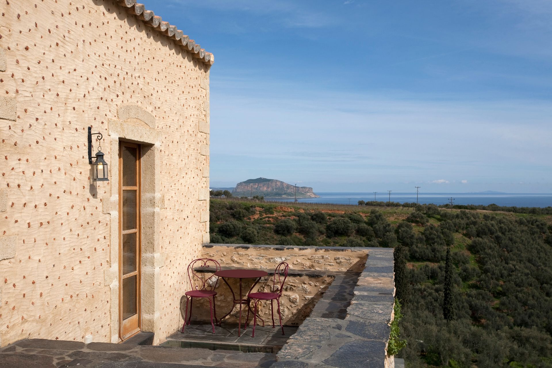 In the 25 acres of the mansion, which has now been transformed into a 5* boutique hotel, we share a unique experience created by the combination of nature and tradition. With roots in the Byzantine, Ottoman and Venetian eras, crowned by olive trees, vineyards and citrus trees, the Kinsterna Hotel complex overlooks the magnificent view of the castle of Monemvasia. And we stand by proudly presenting you with an architectural dialogue that interweaves aesthetic simplicity with the philosophy of self-sufficiency and autonomy - characteristics that have earned us important international distinctions.