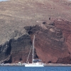 The morning tour starts from the Ammoudi port of Ia at 10:20-10:30am and the catamaran sails very close to the caldera cliffs so that you can explore the "Caldera" and take some great photos. The crew members will offer you refreshments on board as the catamaran sails very close to the Volcano, heading to the first stop at theHot Springs. There you can have a mud bath and you will feel the activity of thevolcano of Santorini and its thermal characteristics. After half an hour the catamaran will sail to the south part of the Island. Sailing close to the Akrotiri, Light House and Indian Rock the catamaran will stop at the White Beach. At this unique beach we will stop for an hour for swimming and snorkeling. The crew after offering you snorkeling equipment and towels, they will prepare the delicious barbeque meal with Greek Traditional products, Santorinian wine, fruits and soft drinks. The Red beach is the last stop before ending the tour. The Red Beach has been formed from the Hot Lava of the volcano and its red color is vivid and unparalleled. The catamaran will stop there for about half an hour for swimming and snorkelling.