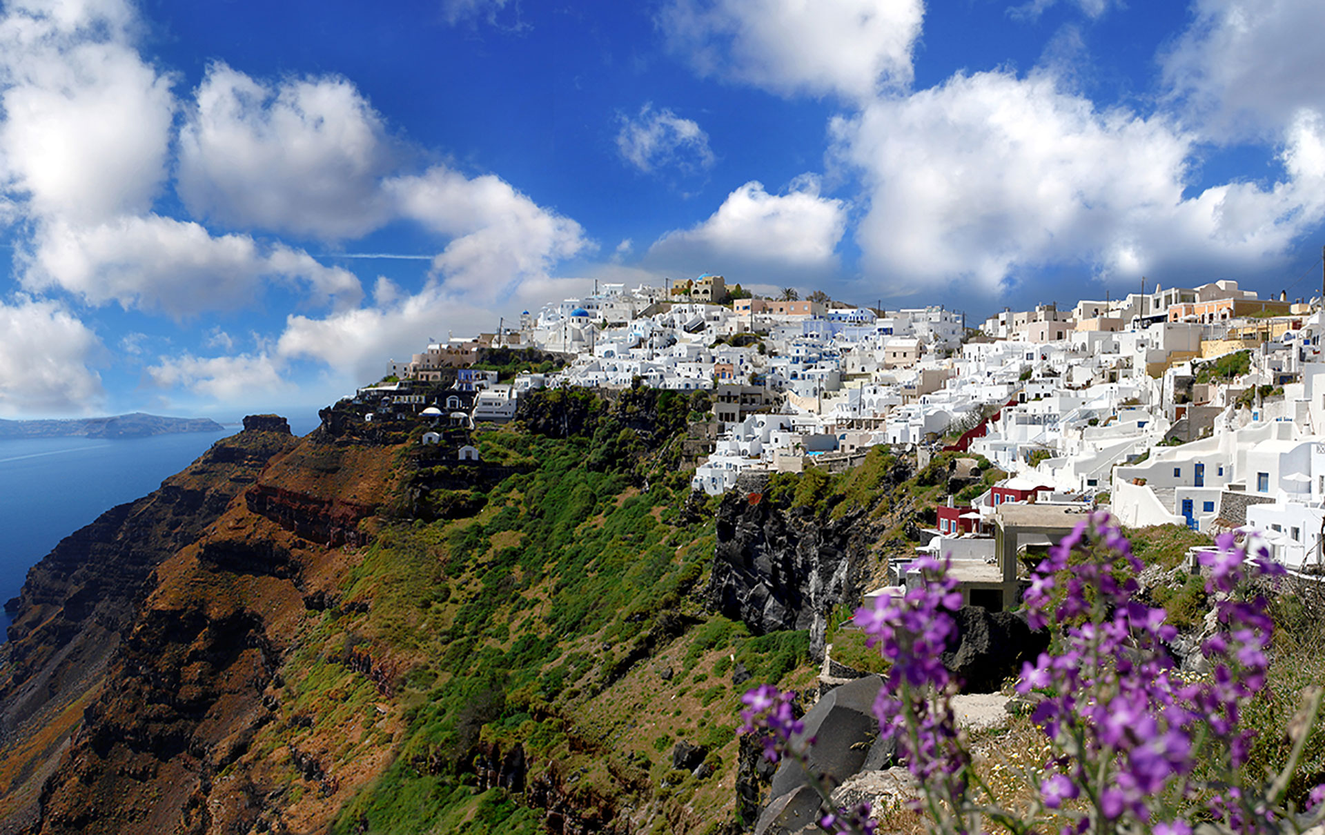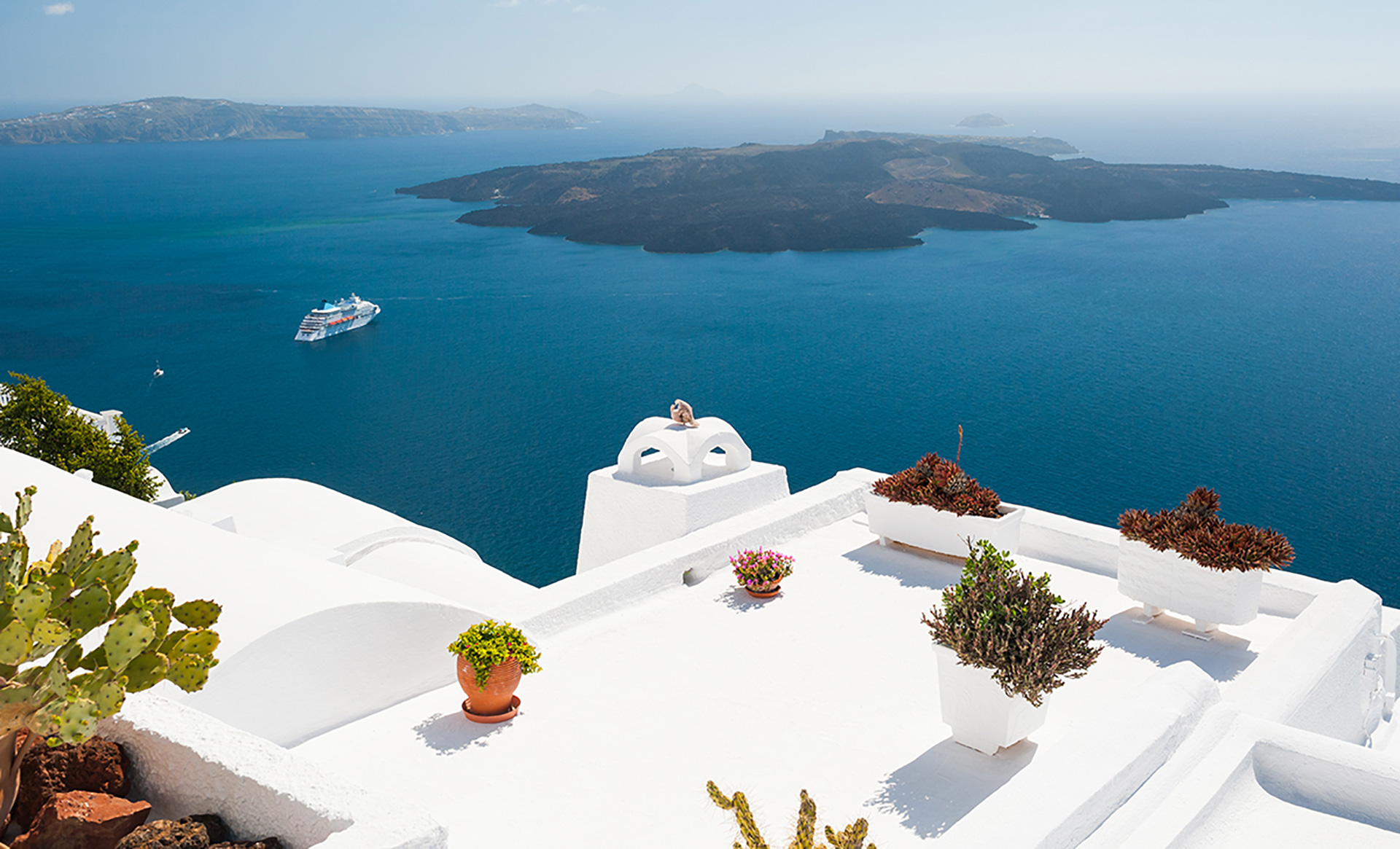 Classically known as Thera and officially Thira, the picturesque island of Santorini dots the South Aegean Sea. Some destinations have stunning beaches and breathtaking natural landscapes, while others have extraordinary ancient cities and excellent restaurants. The popular Greek island of Santorini is blessed with all of these attractive features and more. This lovely volcanic island in the Cyclades lies in the middle of the Aegean and is well known for its strikingly white cliff-side homes with their pretty deep blue rooftops. Visitors will be treated to dramatic ocean views, pristine beaches, traditional Grecian architecture, many fascinating historical sites, fine dining, and numerous, excellent local wineries. With all of this on offer, it is little wonder that this remarkably romantic island has become one of the world’s most popular island getaways.
