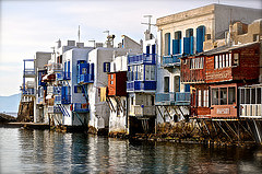 Among the most Greek islands, Mykonos island is located almost in the centre of the Cyclades complex. It is particularly famous for the cosmopolitan atmosphere, the exciting nightlife, the picturesque Cycladic architecture and the magnificent beaches that makes holidays in Mykonos a magnificent experience. There are many things to do in Mykonos Greece, an island perfect for people of all ages: walk along the narrow streets of Chora, see the sunset from Little Venice, stay in luxurious hotels and swim in exotic beaches. Super Paradise, Paradise and Kalo Livadi are fabulous places to swim and spend a day under the hot sun. In the evenings, head to Mykonos Town and enjoy a night out in the many bars and clubs.