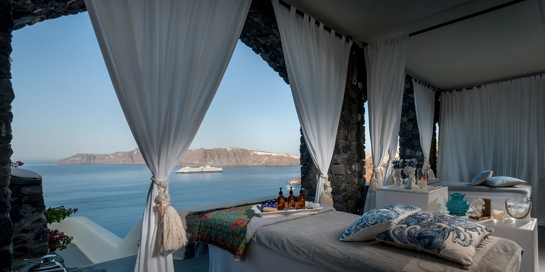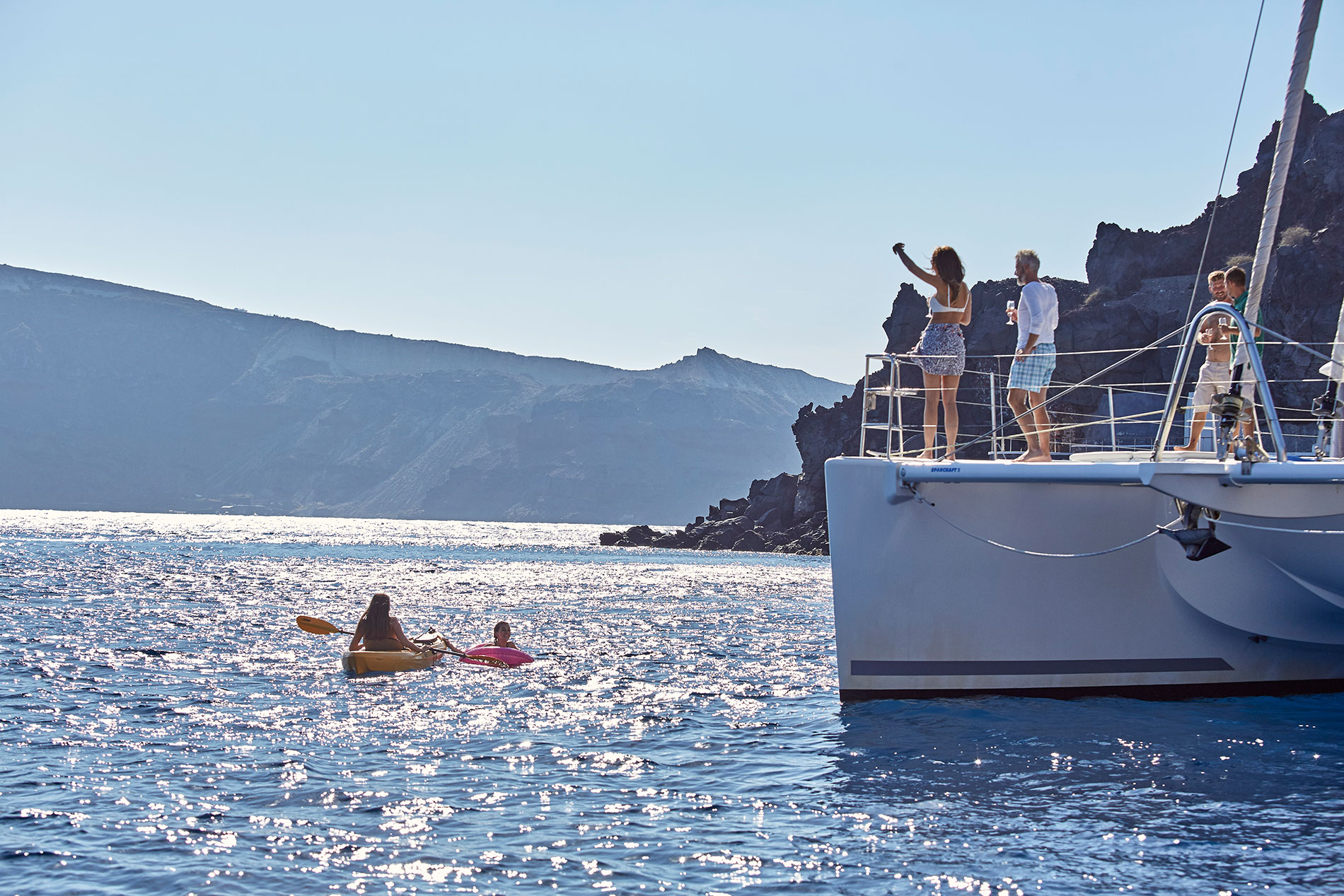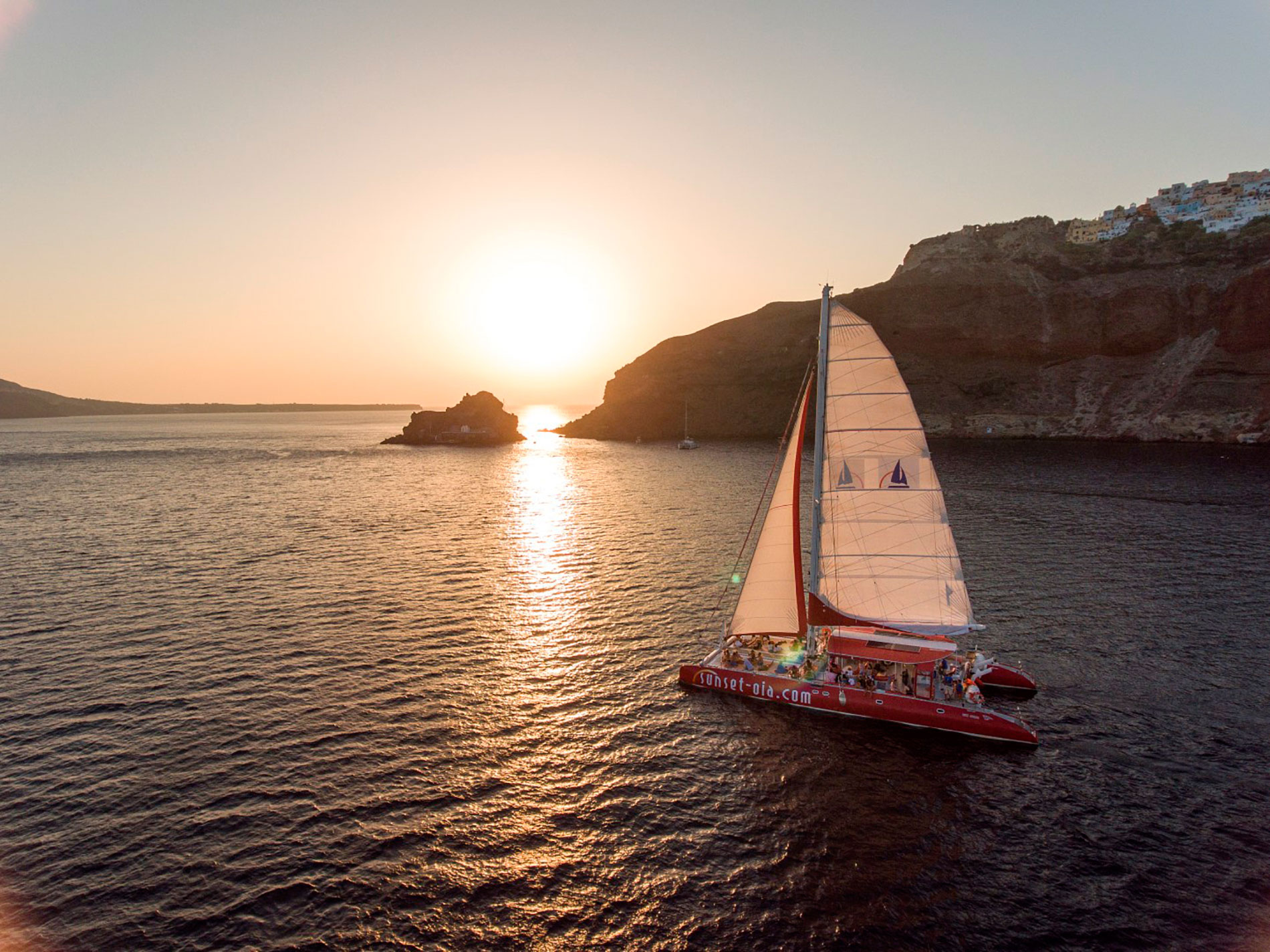 On your arrival in Santorini, your Antelope Travel's Concierge will take you to what is sure to be some of the most memorable accommodation of your life. The views from your hotel will be unparalelled as you look of the caldera and onto Nea Kameni, the volcano in the middle of the sea. We recommend having your dinner at a restaurant on the edge of the caldera overlooking the spectacular sunset. Next day, in the afternoon, we will pick you up for your semi private sunset catamaran cruise. Sail into the sunset off Santorini on this 5-hour cruise on board a catamaran, and enjoy a complimentary barbecue supper with wine and soft drinks. Sail past beautiful Red Beach and White Beach, and jump off to swim in the hot springs and snorkel in the blue Aegean Sea.
